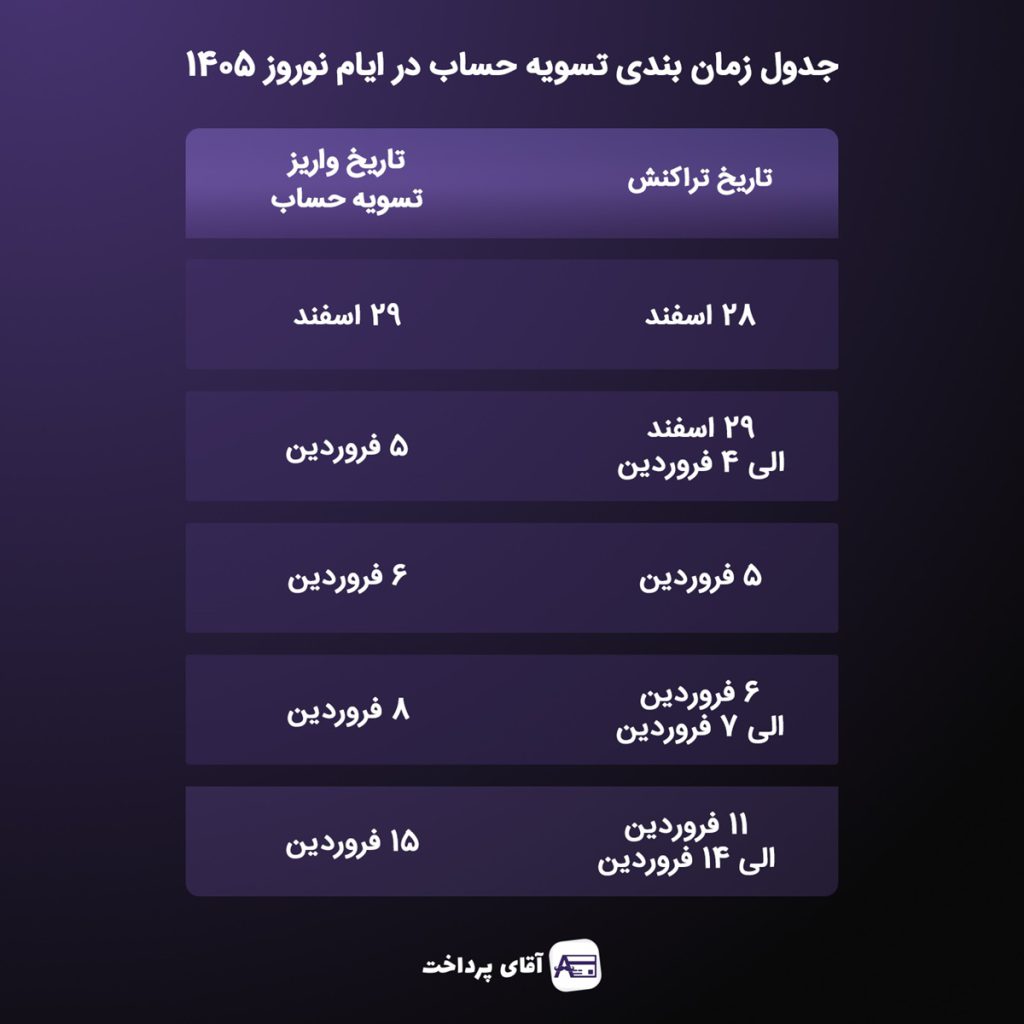 طبق اعلام شاپرک، زمانبندی واریز تسویهحسابها در ایام نوروز سال جدید مطابق با جدول اعلامی خواهد بود.